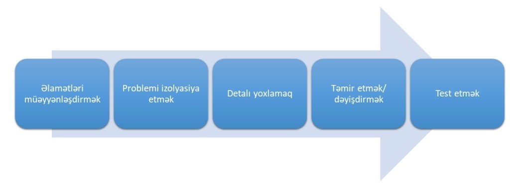 Nasazlıqların aşkarlanması və aradan qaldırılması prosesini 5 mərhələyə bölmək olar: